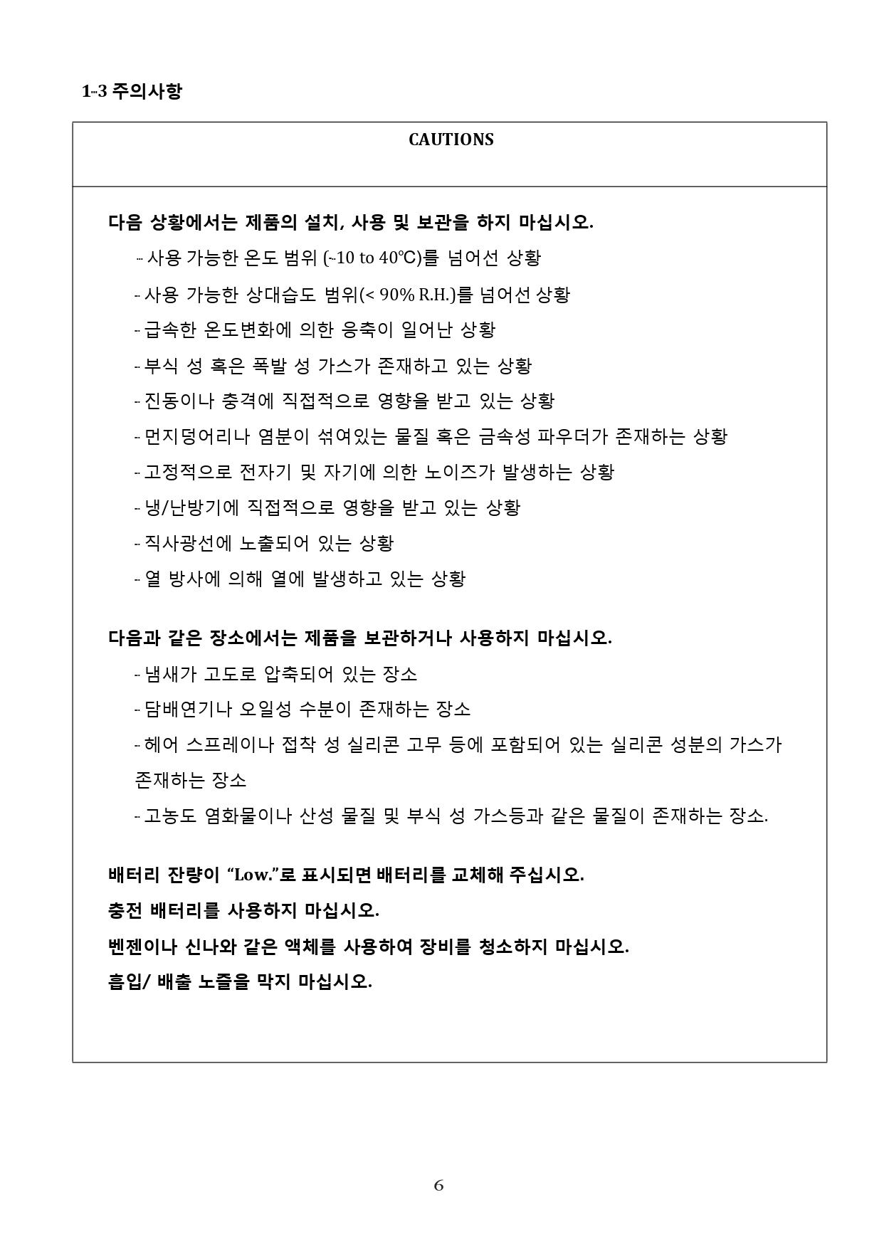그리고 가장 기억해야 할 중요한 내용은 장비의 고장으로 이어지기 때문에 반드시 피해야 하는 상황입니다.