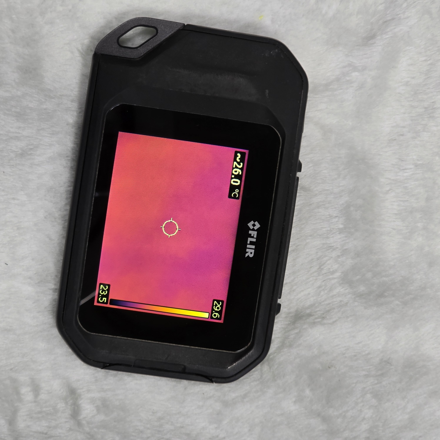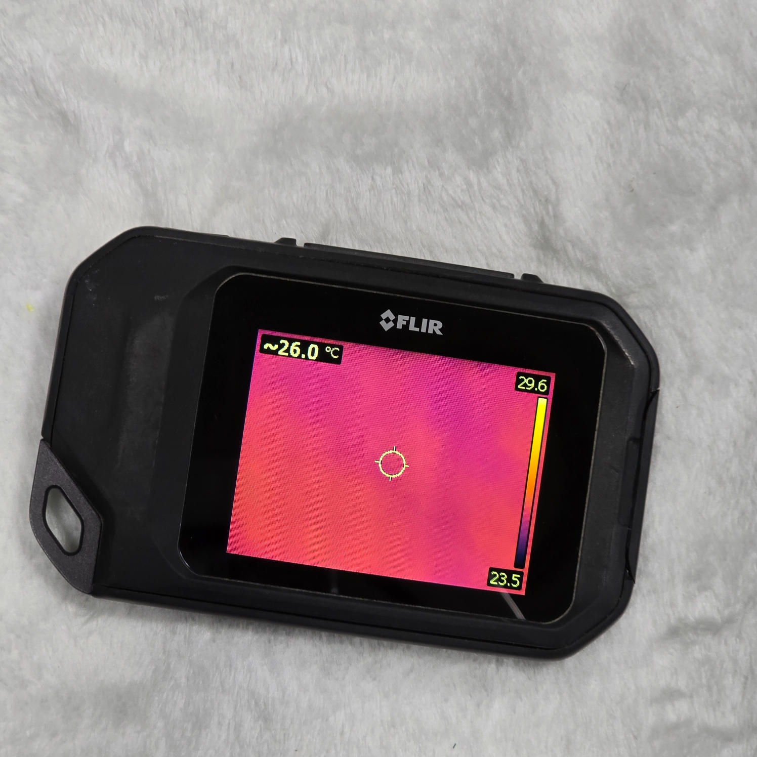 3. 부팅이 끝나면 다음과 같이 실제 온도를 보여주는데요. 현재 카메라에 잡힌 온도는 26도 정도이고, 23도에서 29도 정도의 차이가 있다고 보여지네요.