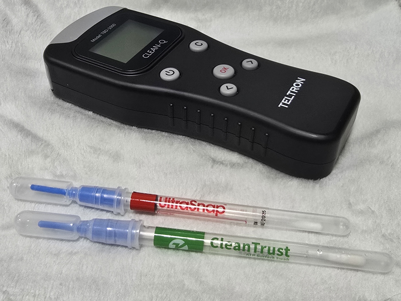ATP측정기에 사용되는 시약봉은 루시페린-루시페레이스 시약봉이라고 하는데요. 이 시약봉에는 루시페린-루시페레이스 가 ATP와 화학 반응해 빛을 생성하게 되고, 측정기가 이 빛의 강도를 측정해서 오염 수치를 보여주는 원리입니다. 한번 사용하면 다시 사용할 수 없기 때문에 일회용이라고 할 수 있구요. 비교전과 비교후의 결과를 알려면 최소 2개 이상 필요합니다.