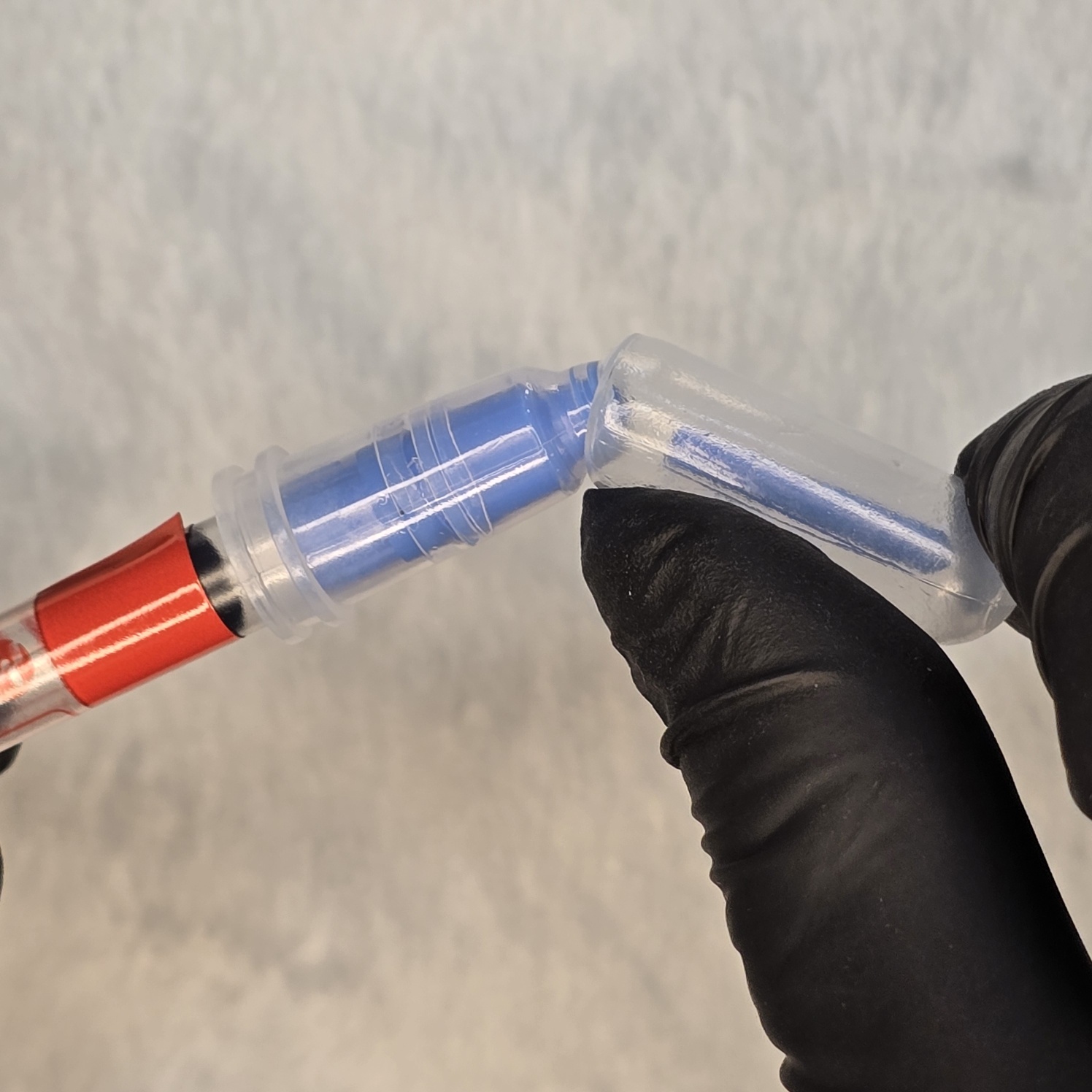 3. 시약봉의 위아래를 잡고 비틀듯이 반대방향으로 당기면 뚜껑이 분리된다.