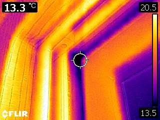 - 천장: 국소적으로 차가운 색상의 경우 누수 가능성